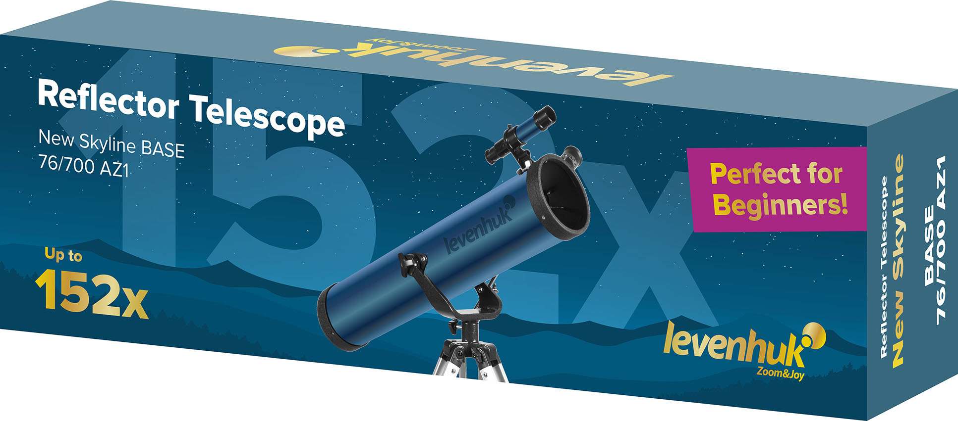 Классический рефлектор Ньютона Levenhuk New Skyline BASE 76/700 AZ1 – это простой в управлении телескоп, с помощью которого можно увидеть кратеры Луны, планеты Солнечной системы, звездные скопления, почти все объекты каталога Мессье. Прибор предназначен для начинающих любителей космоса всех возрастов и отлично подходит для выездных наблюдений на природе без городской засветки. Ключевое преимущество телескопа – широкая комплектация: все, что нужно для наблюдений, уже есть в наборе.