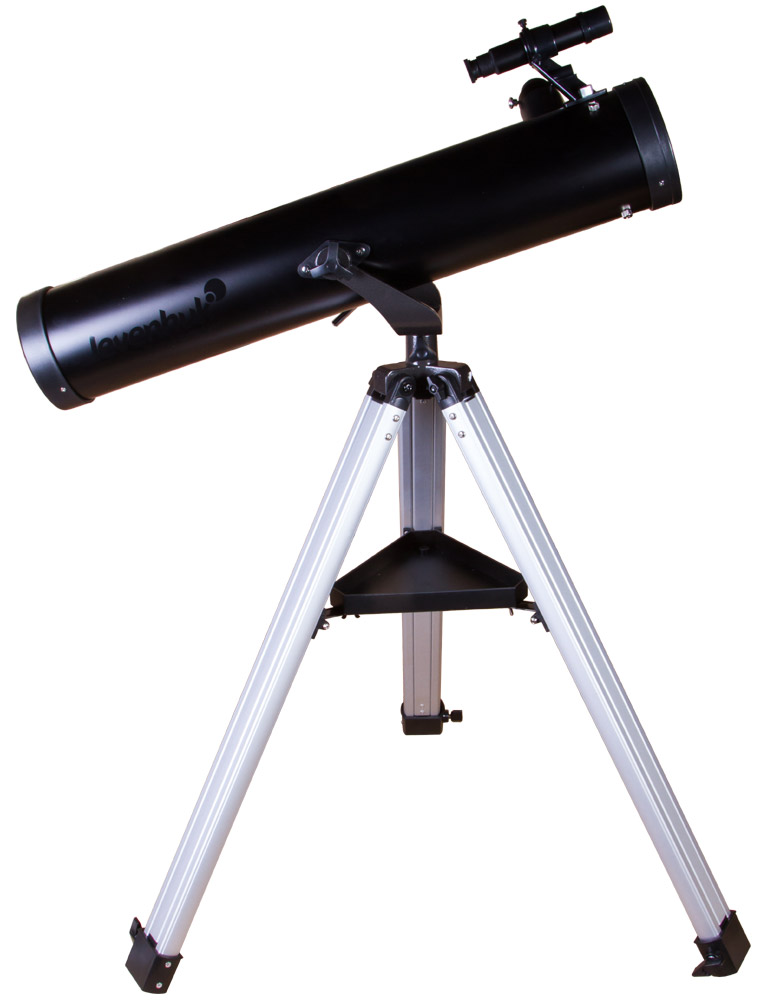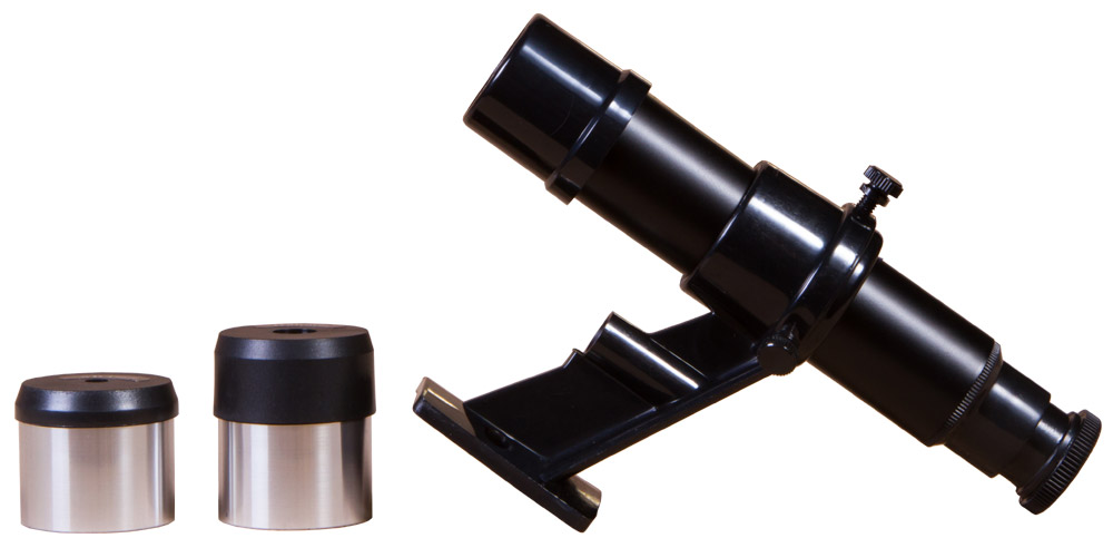 Несмотря на то, что телескоп больше подходит для исследования дальнего космоса, в него можно изучать и Луну, и планеты Солнечной системы. В комплект поставки уже включены два окуляра, меняя которые, можно оптимальным образом настроить оптику под наблюдения разных космических объектов. А оптический искатель с 6-кратным увеличением помогает точно наводить оптическую трубу на интересующие вас участки неба.
