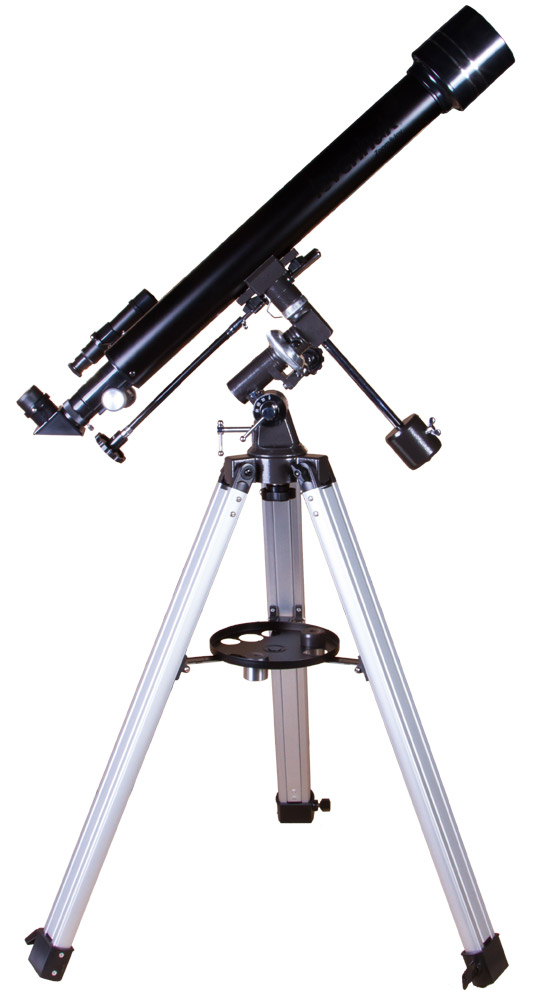 За передачу картинки в телескопе отвечают линзы из полностью просветленного стекла. Изображение четкое, подробное, без замутнений и значительных искажений. Для управления используется экваториальная монтировка. С ее помощью удобно вести астрономические объекты по небосклону, поэтому наблюдать можно и быстрый Меркурий, и транзит планет по солнечному диску, и движение МКС над Землей. На освоение управления понадобится некоторое время, но преимущества экваториальной монтировки вы оцените сразу же. Искать объекты на небосклоне помогает оптический искатель с 5-кратным увеличением.