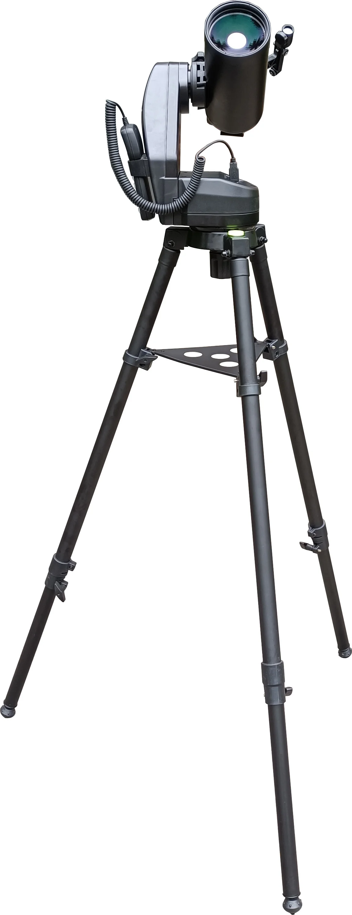В телескопе используется моторизированная альт-азимутальная монтировка, размещенная на мощном стальном штативе для предотвращения паразитных вибраций. Катадиоптрик Максутова-Кассегрена с апертурой 90мм с полным многослойным просветлением и фокусным расстоянием 1250мм - оптимальное решение для изучения объектов ближнего и дальнего космоса с точки зрения соотношения цены и качества. Телескоп использует традиционные фирменные защитные покрытия и износостойкие прочные материалы, снижающие вероятность непреднамеренных повреждений. Он оснащен видоискателем Red Dot.