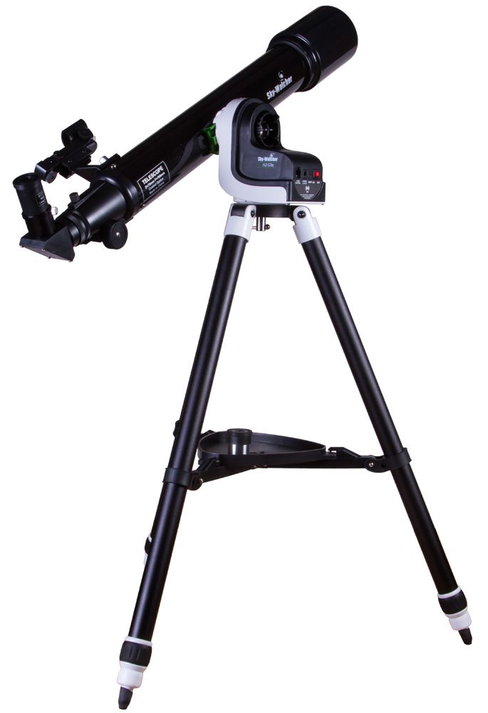 Sky-Watcher 70S AZ-GTe SynScan GOTO – рефрактор с автоматизированной монтировкой, который отлично подходит для изучения ближнего космоса и ландшафтных наблюдений. В него можно детально рассматривать поверхность Луны, кольца Сатурна, фазы Венера и пояса Юпитера. Уран и Нептун видны в телескоп как яркие точки, для изучения доступен и дальний космос. Благодаря системе компьютерного наведения телескопом легко управлять – с поиском и ведением объектов по небосклону справится даже начинающий любитель астрономии.