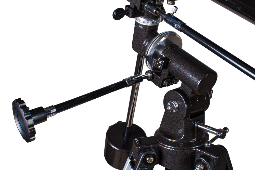 Оптическая труба устанавливается на экваториальную монтировку, позволяющую компенсировать суточное движение астрономических объектов. Механизмы тонких движений позволяют перемещать трубу плавно, без рывков. На ось прямого восхождения можно установить моторный привод (приобретается отдельно).