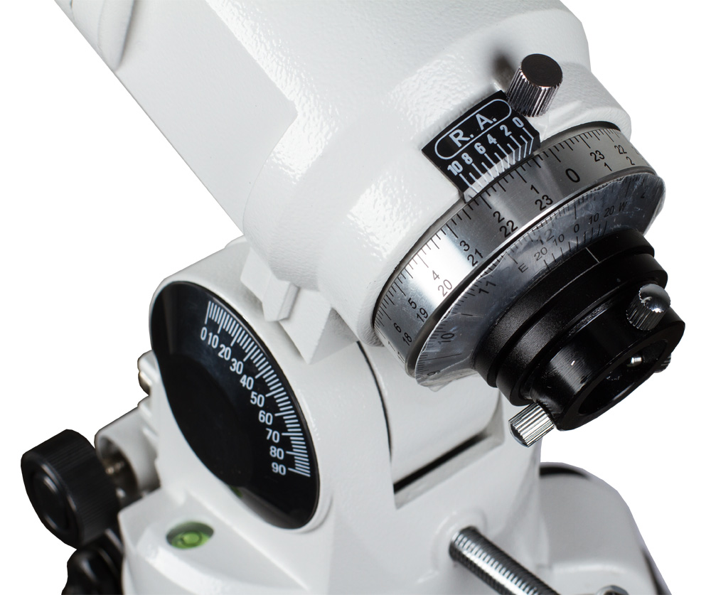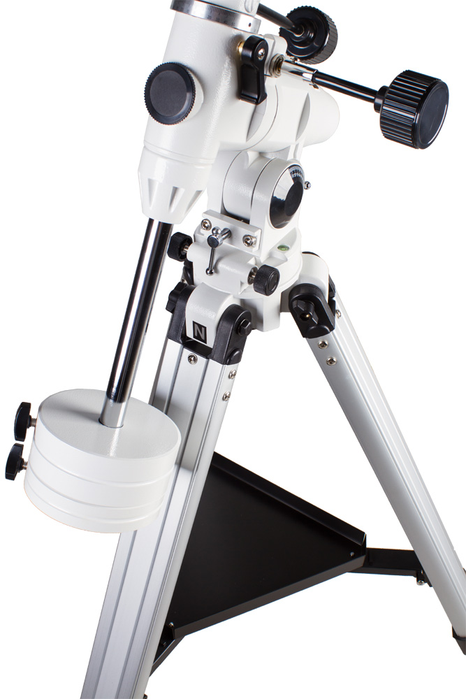 Оптическая труба устанавливается на экваториальную монтировку, позволяющую плавно перемещать телескоп во время наблюдений, компенсируя суточное движение астрономических объектов.