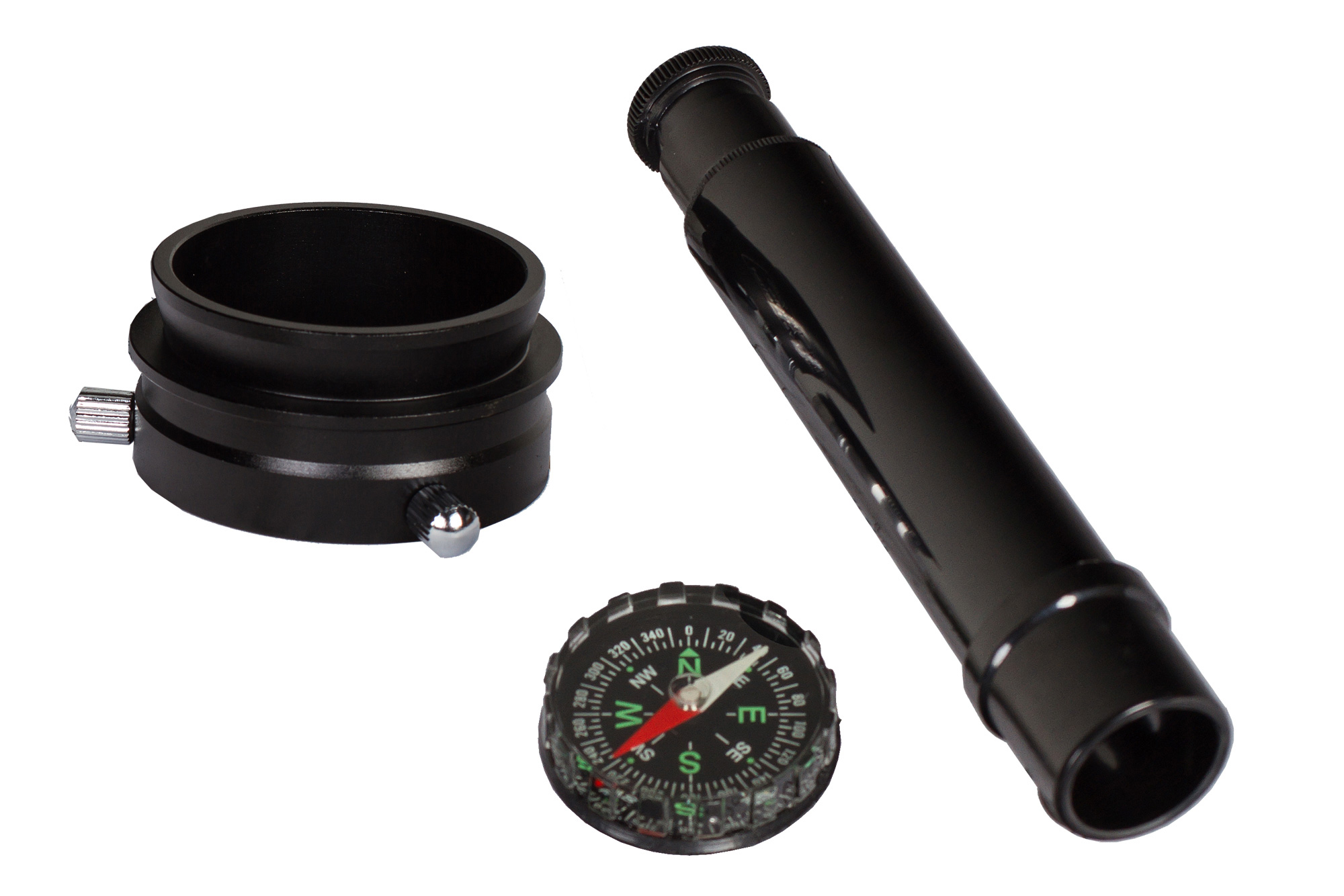 Регулировка положения тубуса в пространстве осуществляется автоматизированной одноперьевой азимутальной монтировкой с мощными сервоприводами по двум осям. Она поддерживает 3 режима ведения объектов и точность позиционирования до 10 угловых минут, позволяет синхронизироваться через SNAP-порт с опционально подключенной зеркальной фотокамерой – последняя устанавливается с помощью комплектного Т-адаптера при условии совместимости с резьбовым креплением М42х1/байонетом К.