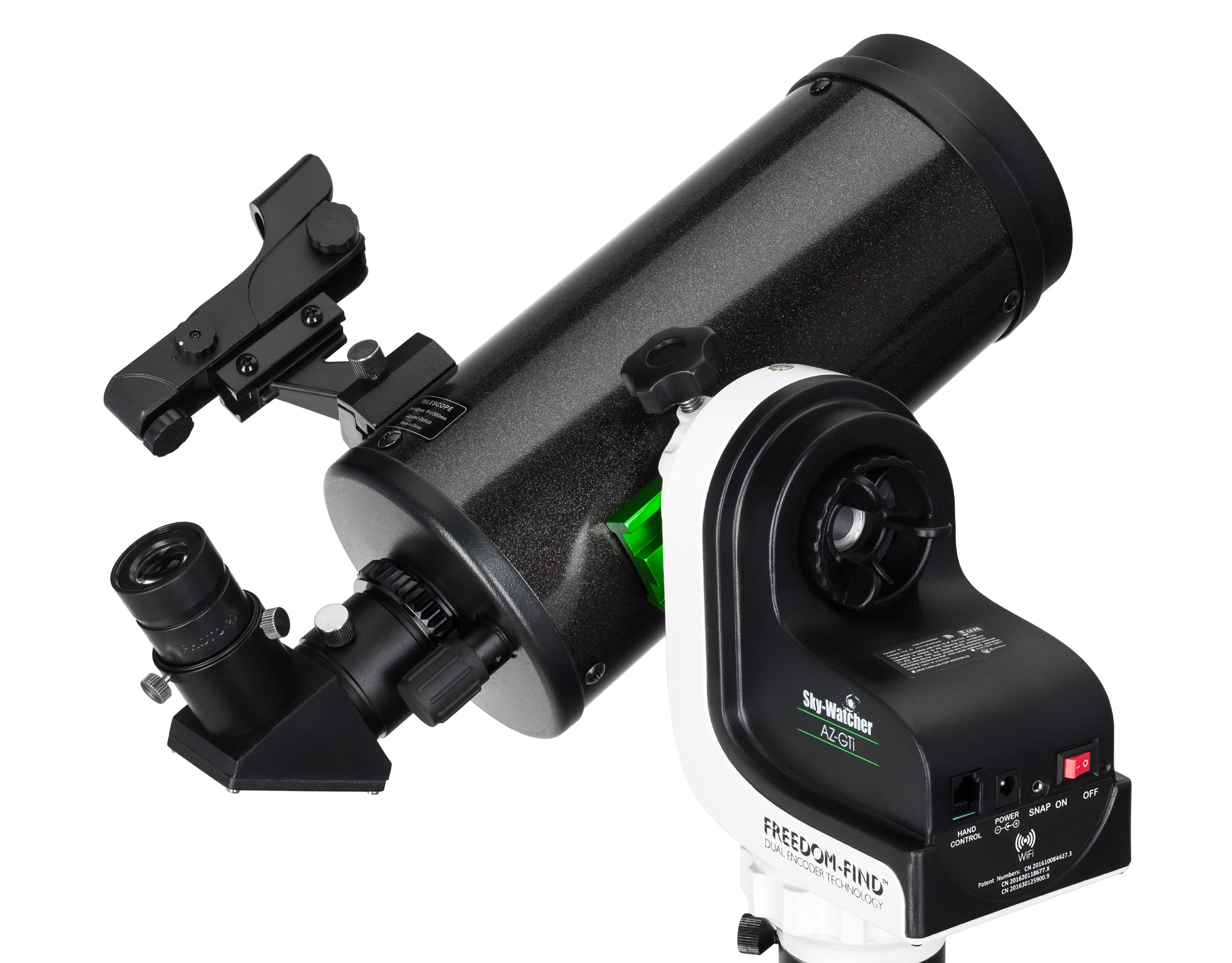 Азимутальной монтировкой можно управлять удаленно из приложения SynScan, которое совместимо с устройствами на базе iOS и Android. После выполнения позиционирования можно свободно переключаться на ручной режим управления, так как система Dual Encoders и технология Freedom-Find сохраняют всю первичную информацию. Монтировка крепится к алюминиевой треноге, высота ножек которой регулируется. В центр треноги устанавливают лоток для аксессуаров.