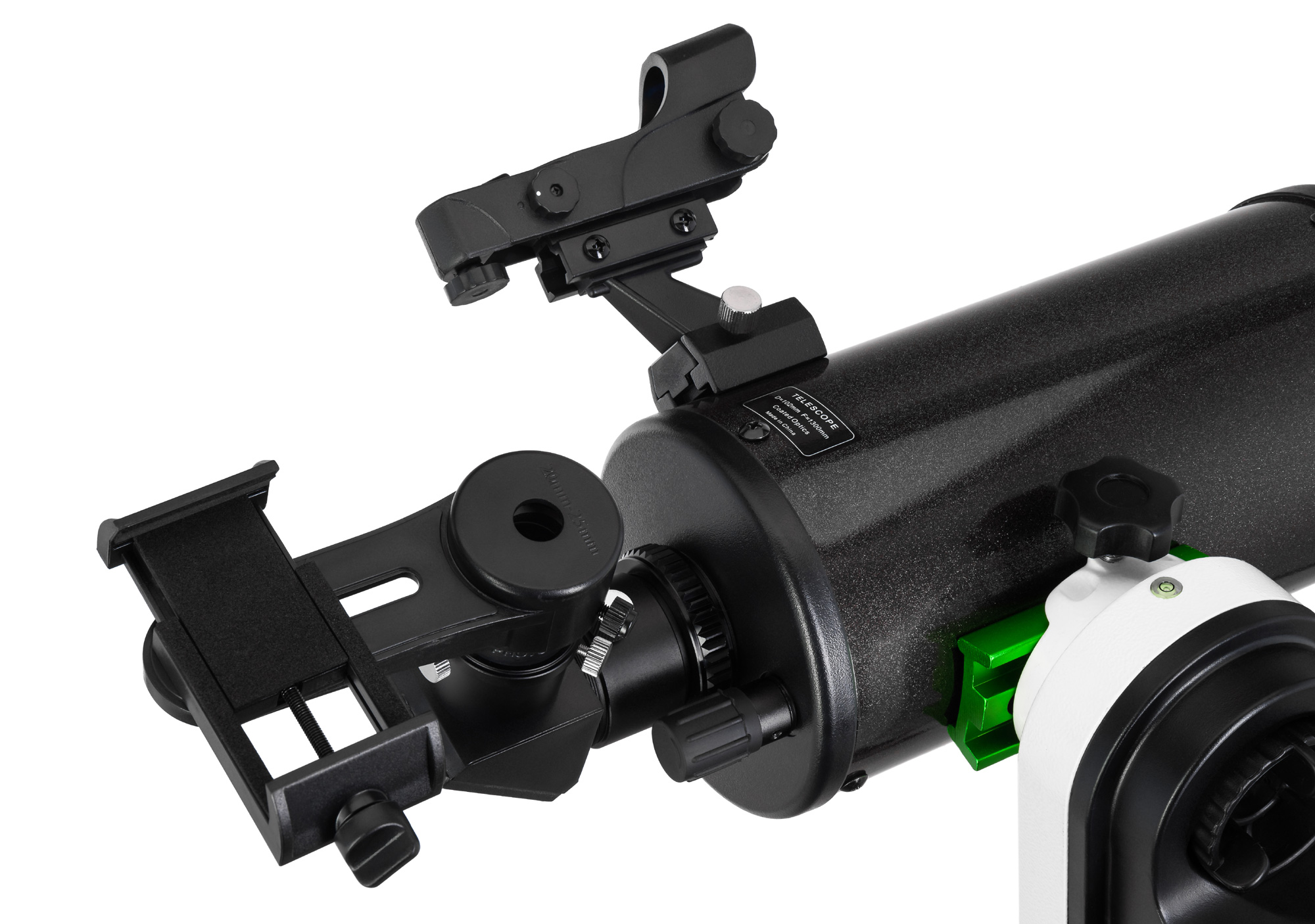 Оба зеркала – главное и вторичное – изготовлены из оптического стекла. На зеркальные поверхности нанесено алюминиевое покрытие с защитным слоем плавленого кварца. Оно повышает отражательную способность до 94% и долговечность зеркал. Поиск объектов на небе осуществляется при помощи искателя с красной точкой. Также в комплектацию включены два окуляра: они обеспечивают увеличение 65 и 130 крат.