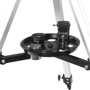 К достоинствам телескопа STURMAN 60700 AZ относятся: просветленная оптика, правильная ориентация изображения, простая в управлении альт-азимутальная монтировка. В комплекте есть два сменных окуляра и линза Барлоу, увеличивающая их кратность втрое. Так как у телескопа длиннофокусный объектив, линза Барлоу не только помогает увидеть небесные тела более крупно, но и сокращает остаточный хроматизм – он в 1,5 раза меньше, чем у обычного ахроматического рефрактора. В комплекте также есть металлическая тренога с лотком для аксессуаров. Дополнительных приспособлений для сборки телескопа не потребуется – вы можете распаковать его и сразу приступить к наблюдениям.
