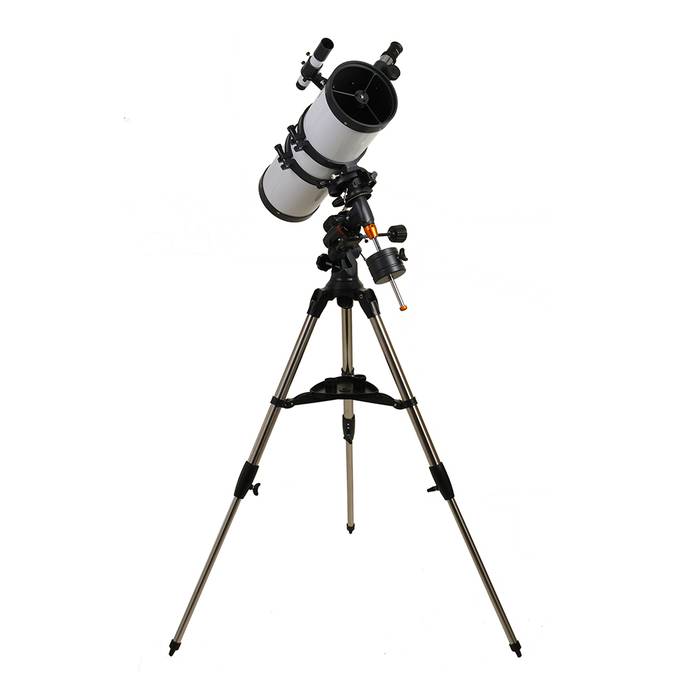 Качественный телескоп для начинающих и продвинутых астрономов. Оснащен монтировкой EQ5 с возможностью установки механизма электропривода (для постоянного наблюдения за выбранным объектом). Он собирает на 70% больше света, чем прибор с диаметром зеркала 114 мм. Вы увидите в него детали лунных гор и кратеров размером 3–4 км, Венеру, Уран, мелкие детали в облачной структуре Юпитера. Ему доступны неяркие звезды, до 14 m звездной величины. Длина трубы 53 см. Комплектуются окулярами PL (Плессла).