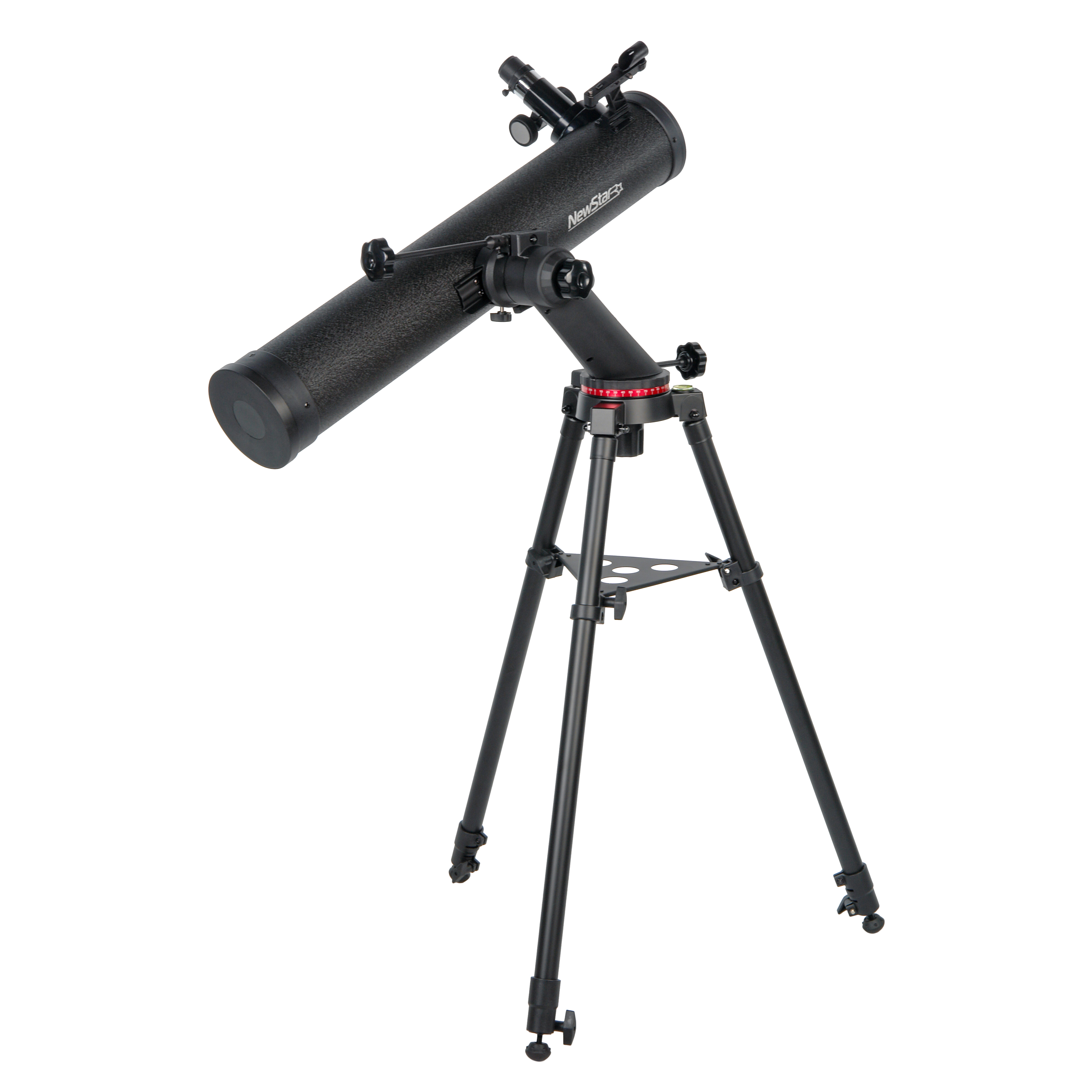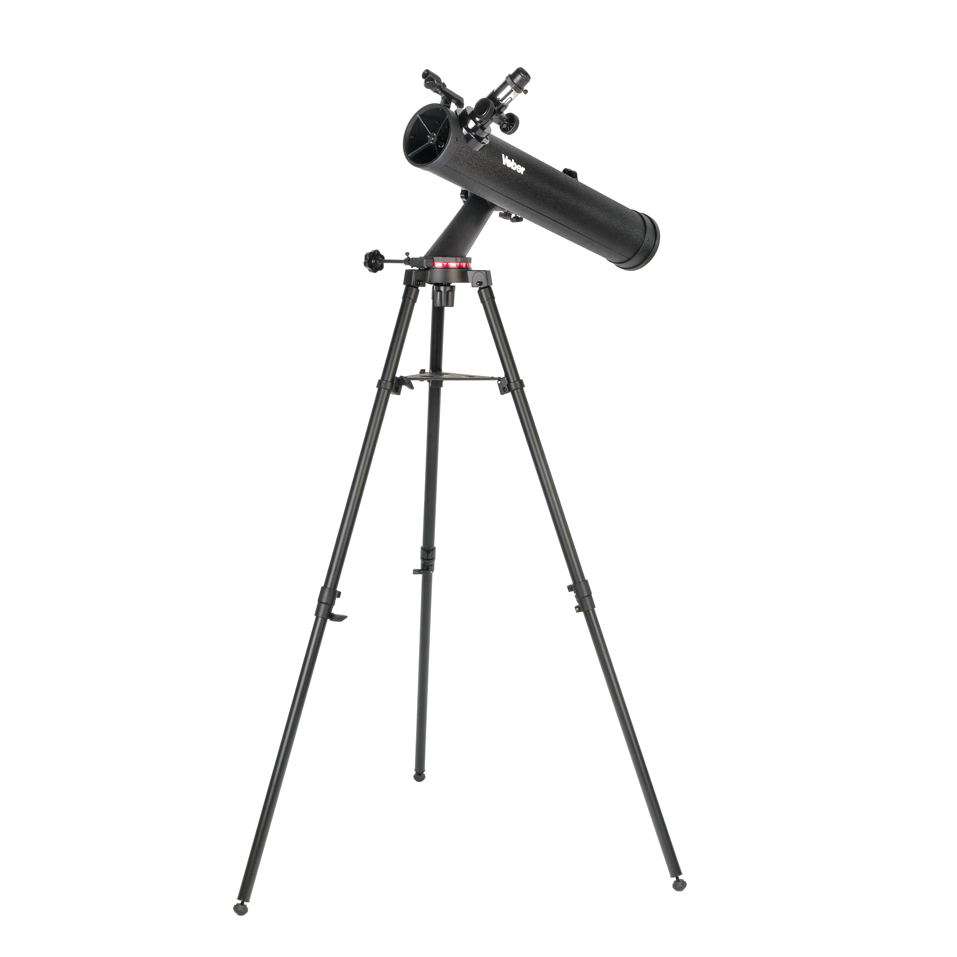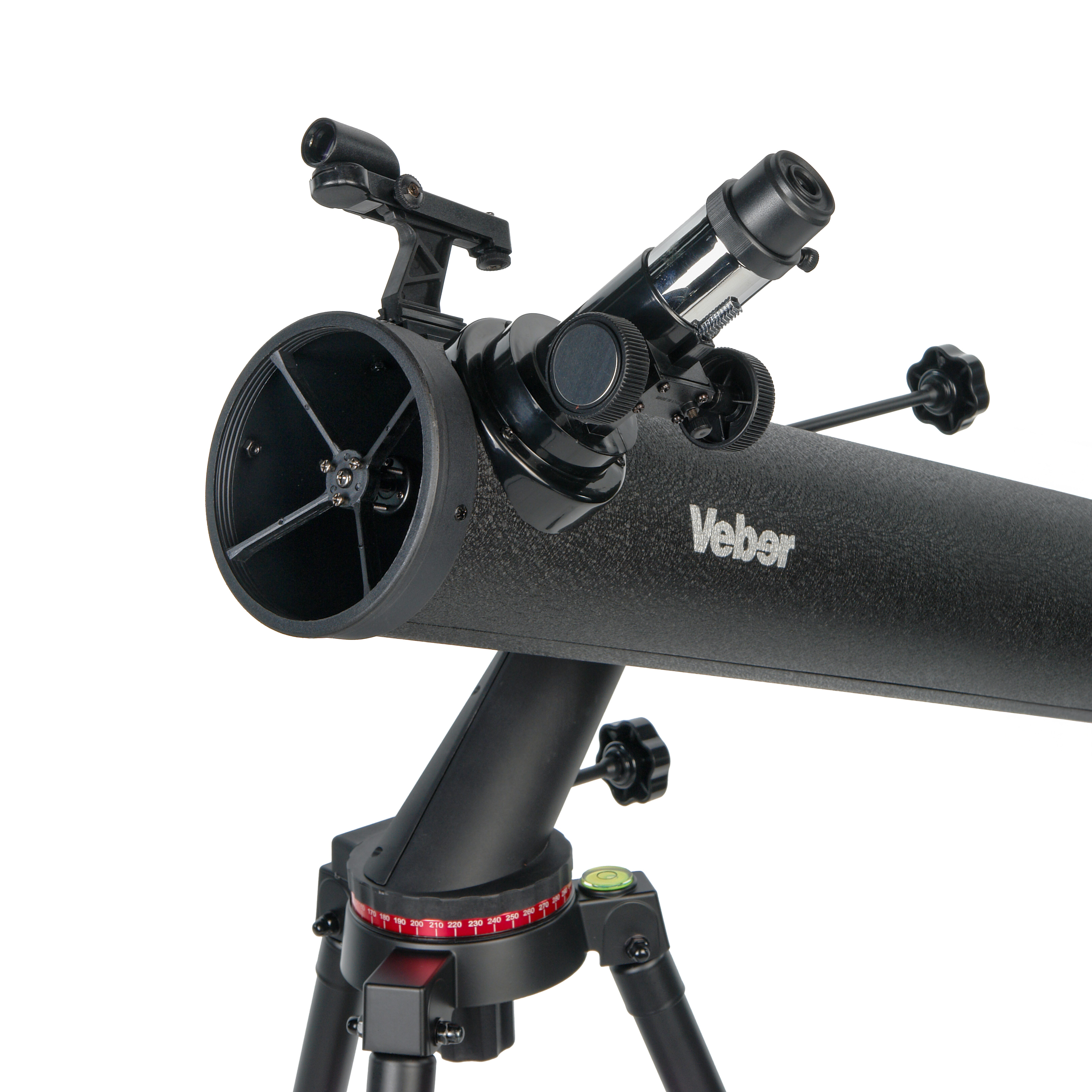 Veber NewStar MT80080 AZIII - это рефлекторный телескоп в металлическом корпусе с диаметром объектива 80 мм, фокусным расстоянием 800 мм, окулярами F6, F20 и линзой Барлоу с увеличением 3х. Искатель Red Dot с лазерной подсветкой. Труба телескопа при помощи крепежной площадки присоединяется к азимутальной монтировке, установленной на штатив-треногу.