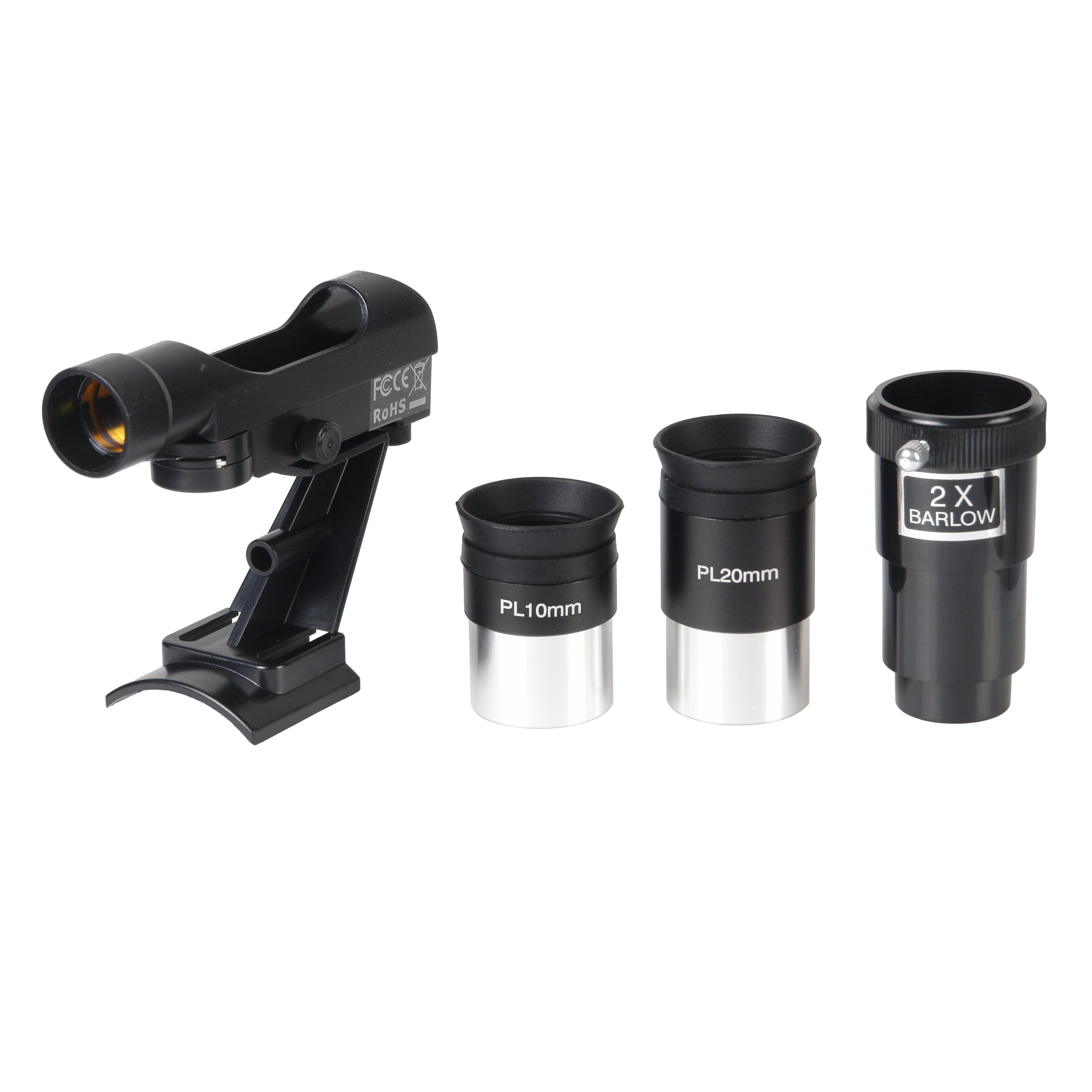 Окуляры Pl10, Pl20 системы Плёсл позволяют наблюдать четкое изображение практически без искажений по всему полю зрения. Кратность увеличения телескопа 65х и 32.5х может быть увеличена при использовании комплектной линзы Барлоу с 2х увеличением до 130х и 65х.