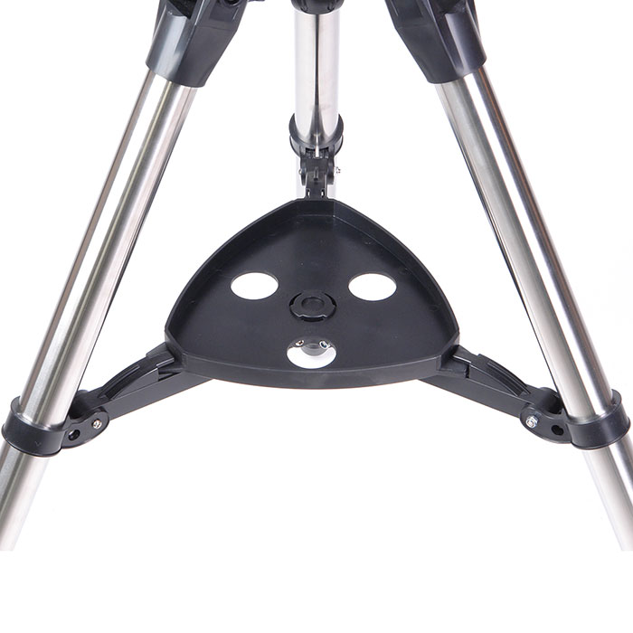 Телескоп комплектуется монтировкой со стальными трубками и возможностью регулировки высоты. Распорки для ножек служат не только для повышения устойчивости, но и в качестве подставки под полочку для аксессуаров (идет в комплекте). Сумка для переноски, в которую укладывается весь комплект, позволяет безопасно (для оптики и внешнего вида) транспортировать прибор для выездов на природу или при походах в гости.