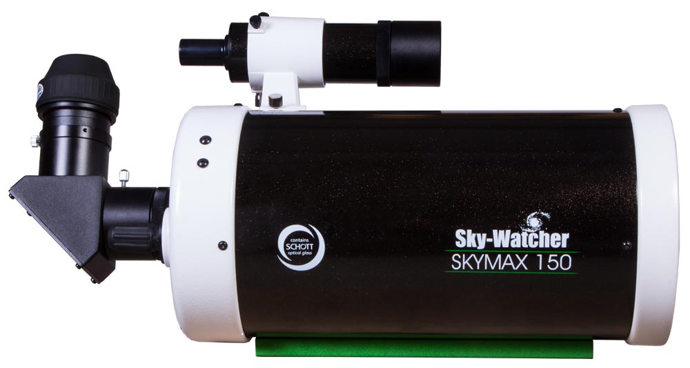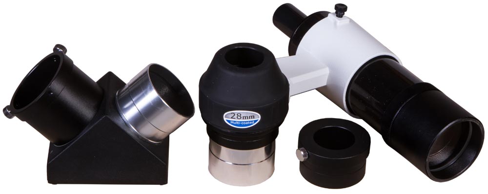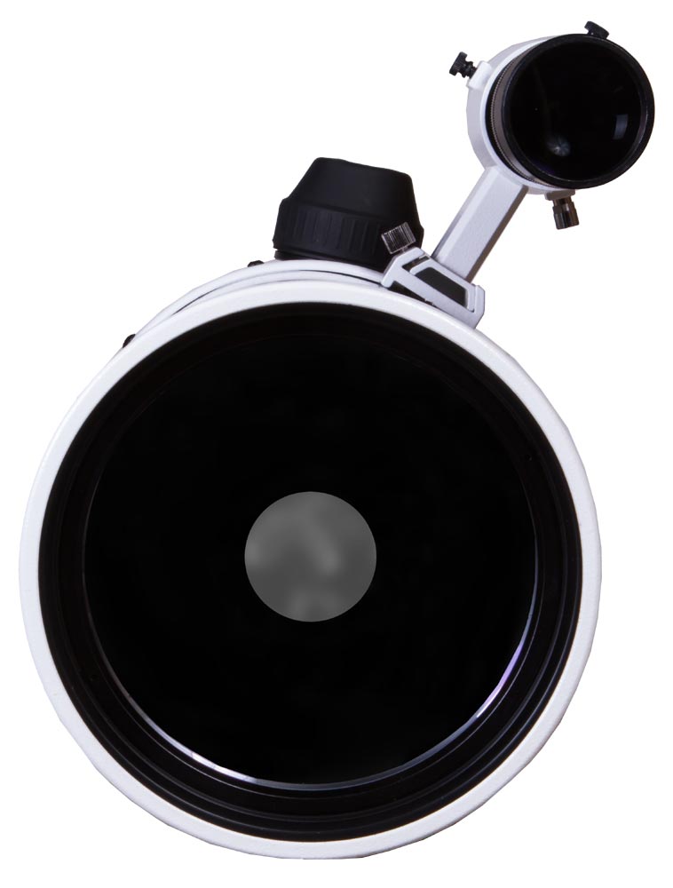 В комплекте с трубой Sky-Watcher BK MAK150SP OTA идет оптический искатель 9х50. Это классический искатель, которым удобно пользоваться для точного наведения на объекты. Есть здесь и диагональное зеркало 90°. Оно правильно ориентирует изображение по вертикали – делает его неперевернутым. В горизонтальной плоскости оно остается зеркальным. С помощью зеркала удобнее наблюдать наземные объекты и объекты, расположенные вблизи зенита.