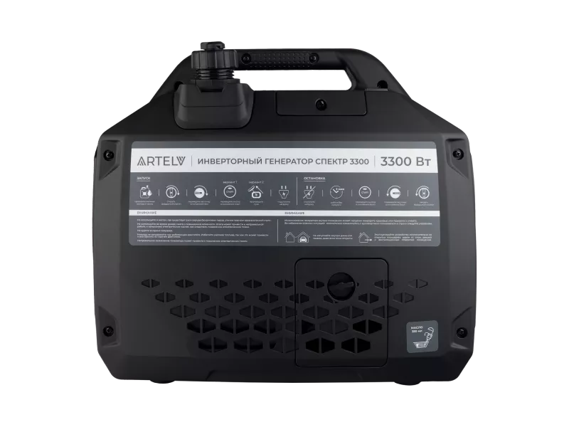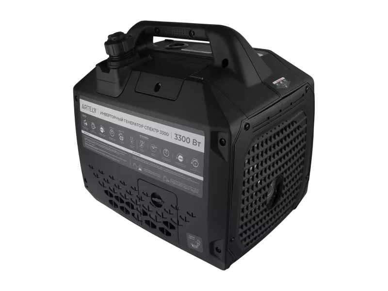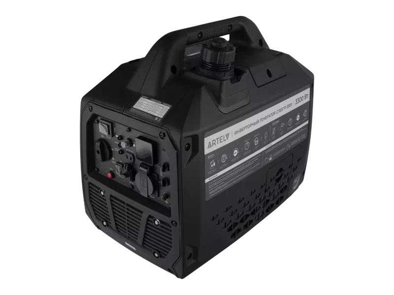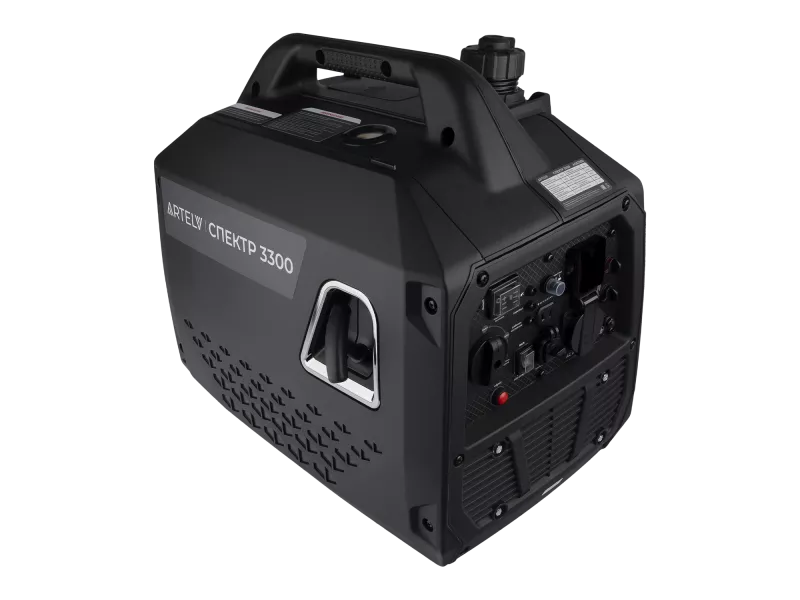 ARTELV СПЕКТР 3300 — компактный и мощный бензиновый генератор, который легко закроет все потребности в электроэнергии. Инвертор вырабатывают синусоидальное напряжение с высокой стабильностью, что идеально подходит для питания чувствительной электроники, а продуманная система безопасности дополнительно защищает подключенные устройства. Генератор ARTELV позволяет подключать все самые востребованные виды потребителей.