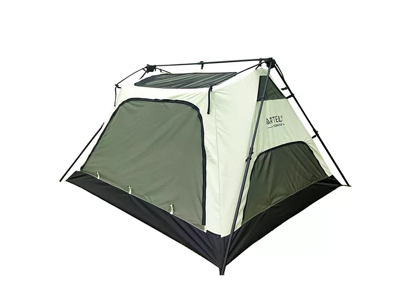 Даже при отсутствии навыков, установка палатки ARTELV 4 занимает минимум времени, не требует больших физических усилий. Несущие дуги с легкостью объединится в прочный каркас, штормовые оттяжки фиксируются колышками к земле вручную или с помощью молотка, топора.