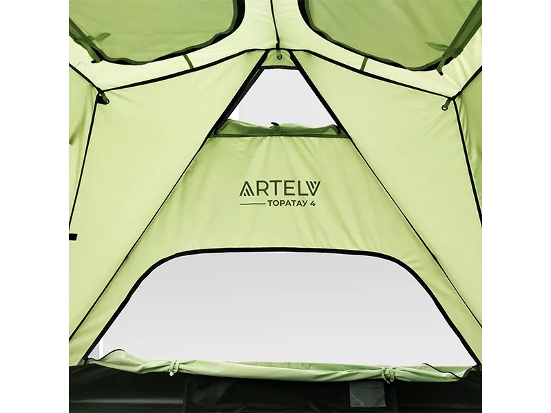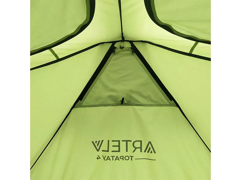 Полиуретановая (PU) пропитка тента практически не влияет на общий вес ARTELV 4, но придает при этом устойчивость к «водяному столбу» 3000 мм. Покрытие длительное время сохраняет свойства независимо от внешних воздействий, что делает туристическую палатку пригодной для отдыха как в солнечную, так и пасмурную погоду.