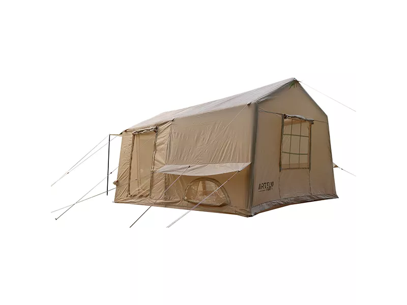 Бежевая надувная палатка TISO-L от ARTELV – восьмиместное двухкомнатное укрытие с удобным расположением окон, дверей и разделкой для установки печи-буржуйки. Благодаря замене традиционных стоек воздушными балками, палатка собирается в считанные минуты, отличается повышенной стойкостью к штормовым порывам ветра. Современные материалы не боятся влаги, умеренных механических повреждений, УФ и агрессивных сред, сохраняют ресурс после продолжительной эксплуатации.