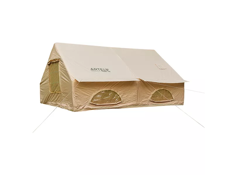 Бежевая надувная палатка TISO-M от ARTELV подходит как для периодических выездов на природу, так и длительного проживания вдали от населенных пунктов.