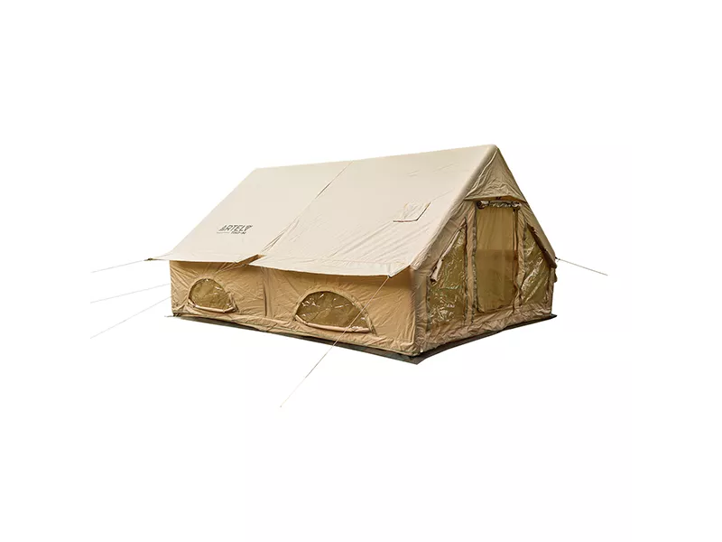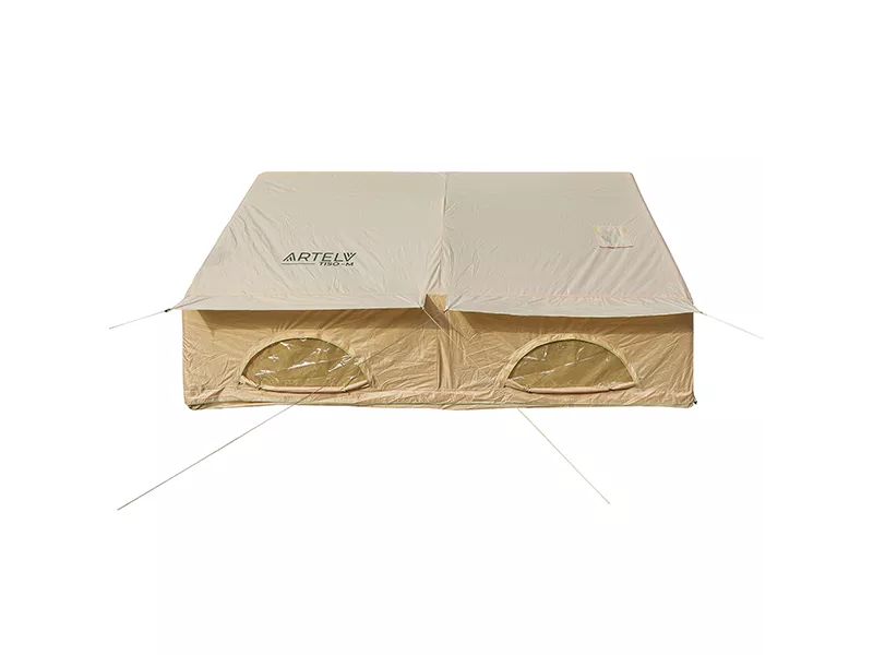 Бежевая надувная палатка ARTELV TISO-M – комфортабельное 2-комнатное укрытие вместимостью до 8 человек, с непревзойденным качеством материалов и фурнитуры. Палатка оснащена большими окнами и дверьми с 3 видами заполнения, дождевым козырьком, огнеупорной раскладкой под печь и сетчатой полкой для удобного хранения вещей под потолком. Она устойчива к разрывам и порезам, не промокает в ливень, выдерживает воздействие ураганного ветра, сохраняет цвет под палящими лучами солнца.