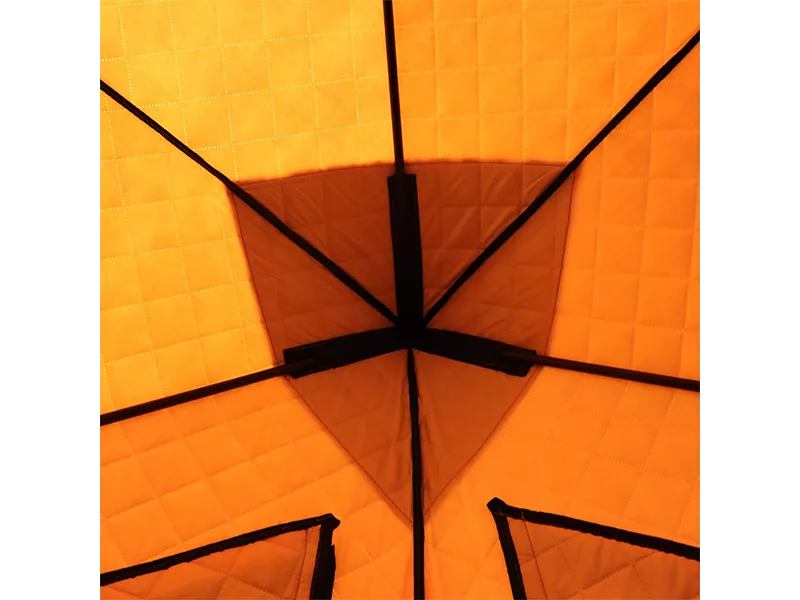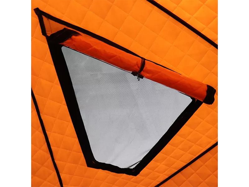 Палатки серии KONDA спроектированы специально для русской зимы. В качестве материала тента применена эффективная комбинация: Оксфорд 210D + утеплитель 180 г/м, а также отталкивающая влагу PU пропитка. Это позволяет с уверенностью и комфортом использовать палатку как при резко отрицательных температурах, так и ранней весной.