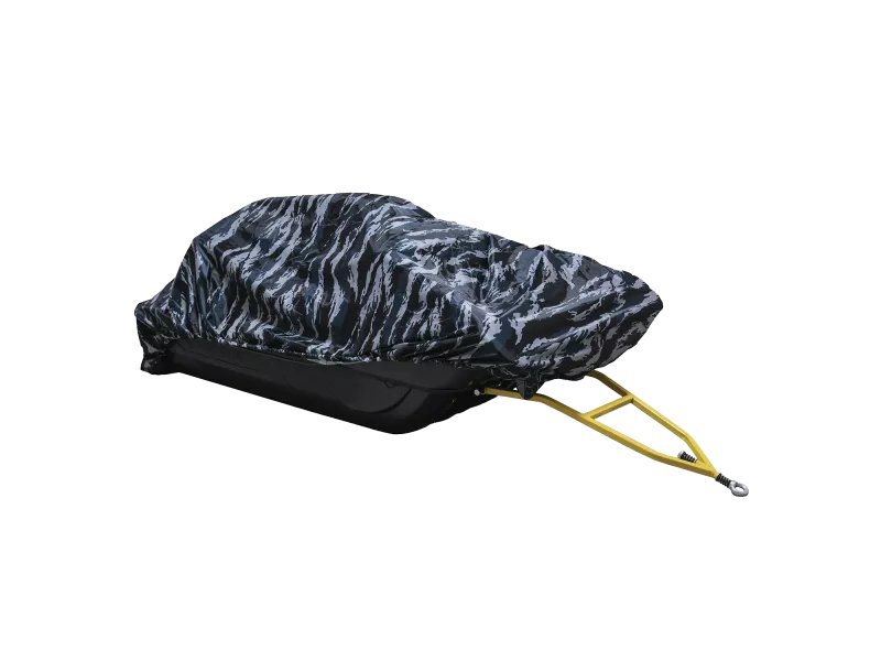 В пошиве чехлов используется надежный и морозостойкий полиэстер «OXFORD» с водоотталкивающей пропиткой. Толстая и прочная резинка по периметру надежно удержит чехол при движении на высокой скорости, а утяжка поможет отрегулировать по размеру саней. Для универсальности использования, чехол имеет запас по высоте 15 см, что даёт возможность перевозить грузы, выше борта саней.