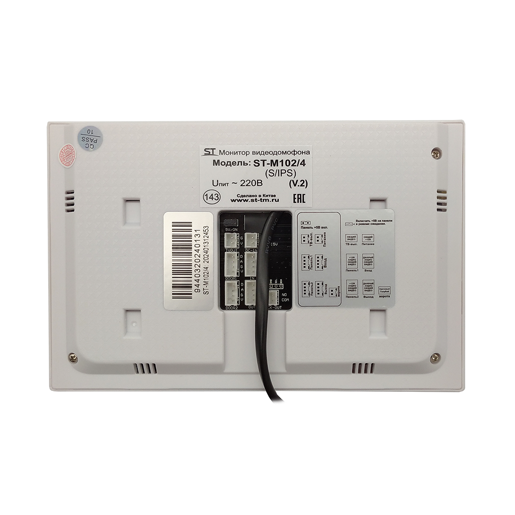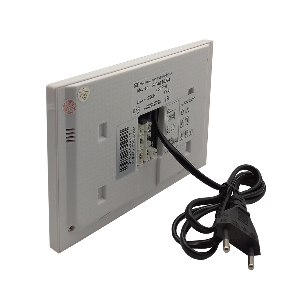 Домофон ST-M102/4 (S) БЕЛЫЙ, Дисплей: 4", Разрешение: 480*272, Поддерживаемые стандарты видео: CVBS, Интерком: Дуплекс, Режим «не беспокоить»: Нет, Слот под SD карту: Нет, Количество мелодий звонка : 16, Функция фоторамки: Нет, Возможности подключения: До 2х вызывных панелей, до 6ти мониторов, Напряжение питания: АС 100-240В (встроенный БП12V1A), Способ монтажа : Накладной (монтажная пластина), Рабочая температура : -10°С...+60°С, Пластик, 110х171х17 мм