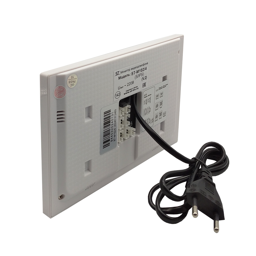 - Комплектность Монитор видеодомофона с кабелем питания 220В,крепеж(дюбель-пробка+шуруп),кронштейн для установки,соединительный кабель (2 контакта),соединительный кабель (4 контакта),паспорт,тарная упаковка
