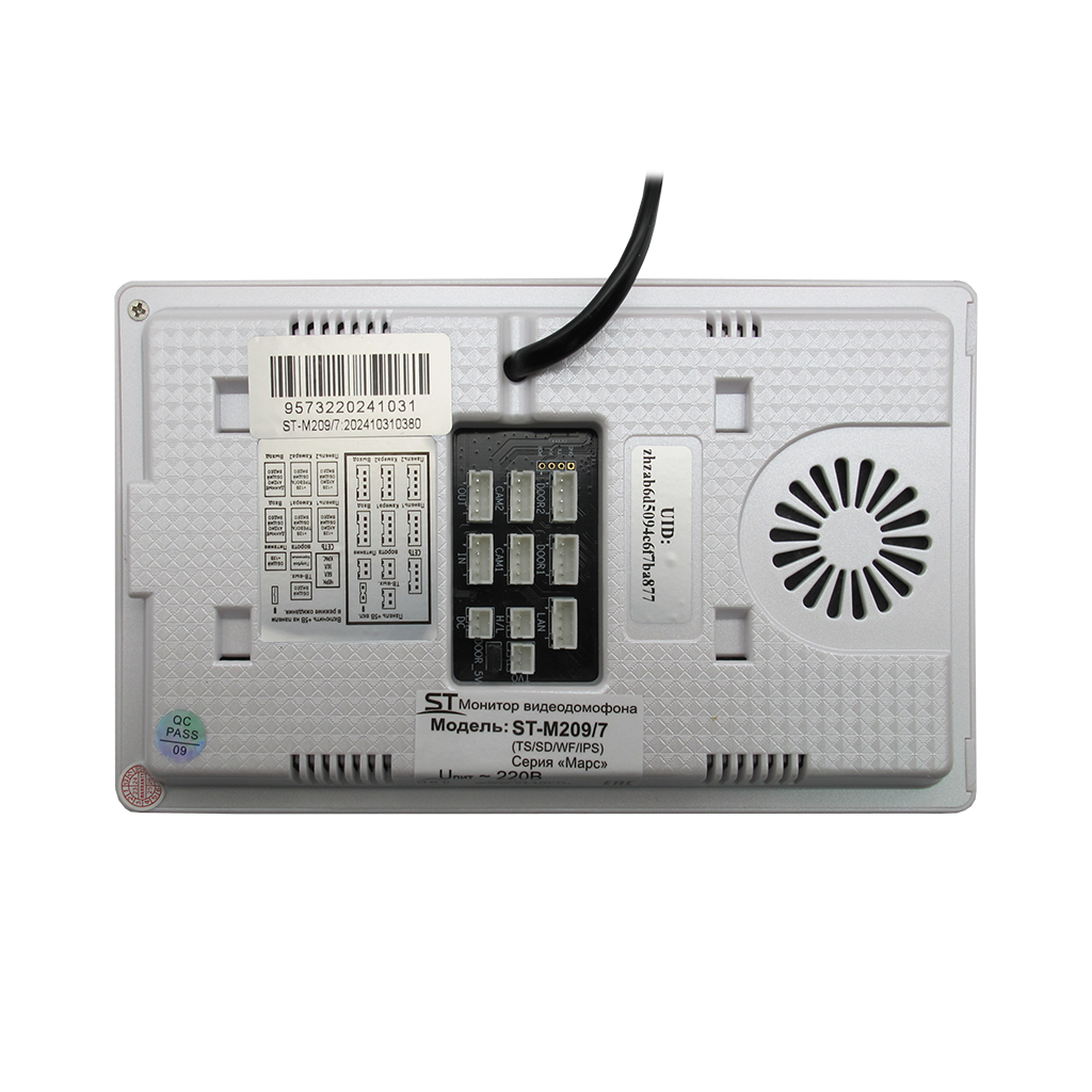 Домофон ST-M209/7 (TS/SD/WF/IPS) БЕЛЫЙ, Дисплей: 7", Разрешение: 1024*600, Поддерживаемые стандарты видео: CVBS/TVI/CVI/AHD(720Р/1080P) , Количество подключаемых панелей: 2, Количество подключаемых камер: 2, Количество подключаемых мониторов: 6, Интерком: Да, Режим «не беспокоить»: Да, Запись фото/видео: Да, Слот под SD карту: Да (до 1 Тб(класс 10)), Количество мелодий звонка : 10, Автоответчик: Да(с SD карт.), Функция фоторамки: Да(с SD карт.), Функция распознавания лиц: Да, Возможности подключения: До 2х вызывных панелей, до 2х видеокамер, до 6и мониторов*, Мобильное приложение: Smart Life/Tuya Smart, Напряжение питания: АС 100-240В (встроенный БП 12V1A), Способ монтажа : Накладной (монтажная пластина), Рабочая температура : -10°С...+60°С, Мах. коммутируемые ток и напряжение для замка (ворота): 30V/1A, Пластик, 175,5х122,5х21,5 мм