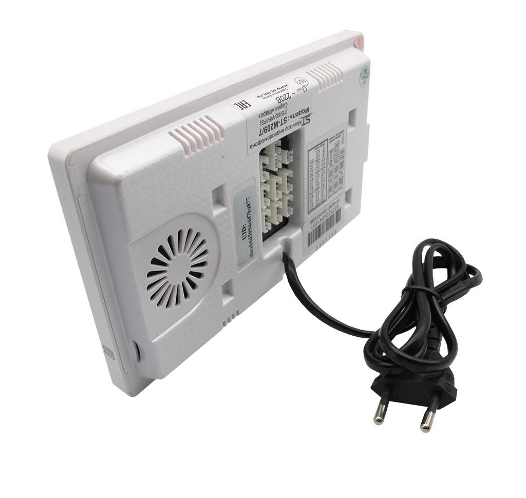 - Комплектность Монитор видеодомофона с кабелем питания 220В,крепежный комплект,кронштейн для установки,соединительный кабель (4 контакта),соединительный кабель (2 контакта),переходник RJ-45,паспорт,тарная упаковка