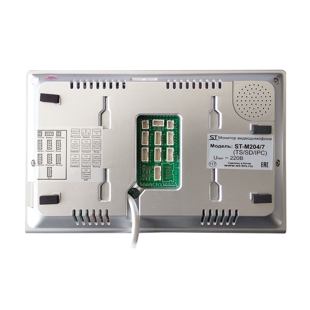 Домофон ST-M204/7 (TS/SD/IPS) СЕРЫЙ, Дисплей: 7", Разрешение: 1024*600, Поддерживаемые стандарты видео: CVBS/TVI/CVI/AHD(720Р/1080P) , Интерком: Да, Режим «не беспокоить»: Да, Запись фото/видео: Да, Слот под SD карту: Да (до 128 Гб(класс ≥ 10)), Количество мелодий звонка : 12, Автоответчик: Да(с SD карт.), Функция фоторамки: Да(с SD карт.), Возможности подключения: До 2х вызывных панелей, до 2х видеокамер, до 6и мониторов*, Напряжение питания: АС 100-240В (встроенный БП 12V), Способ монтажа : Накладной (монтажная пластина), Рабочая температура : -10°С...+60°С, Мах. коммутируемые ток и напряжение для замка (ворота): 30V/2A, Пластик, 190х121х21мм