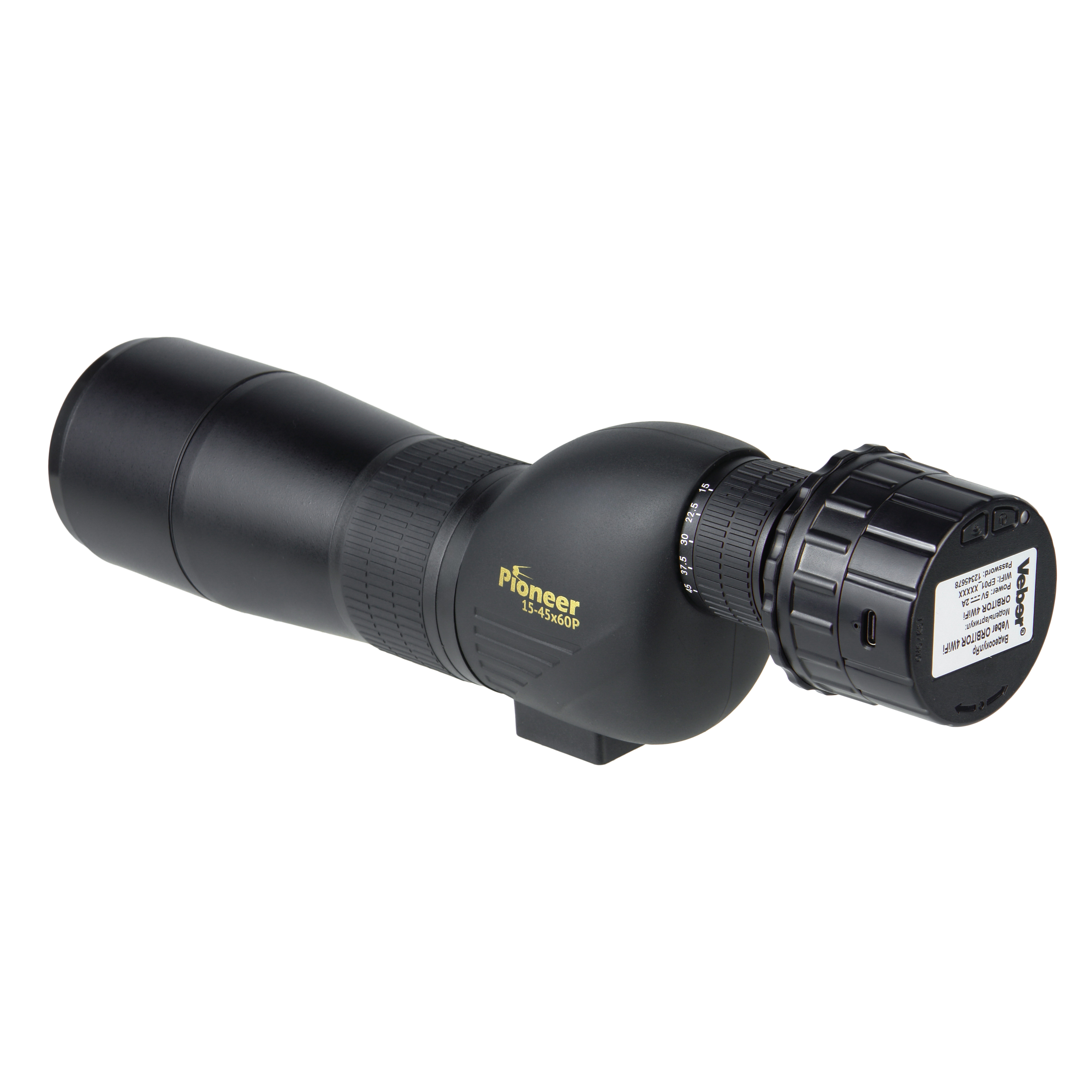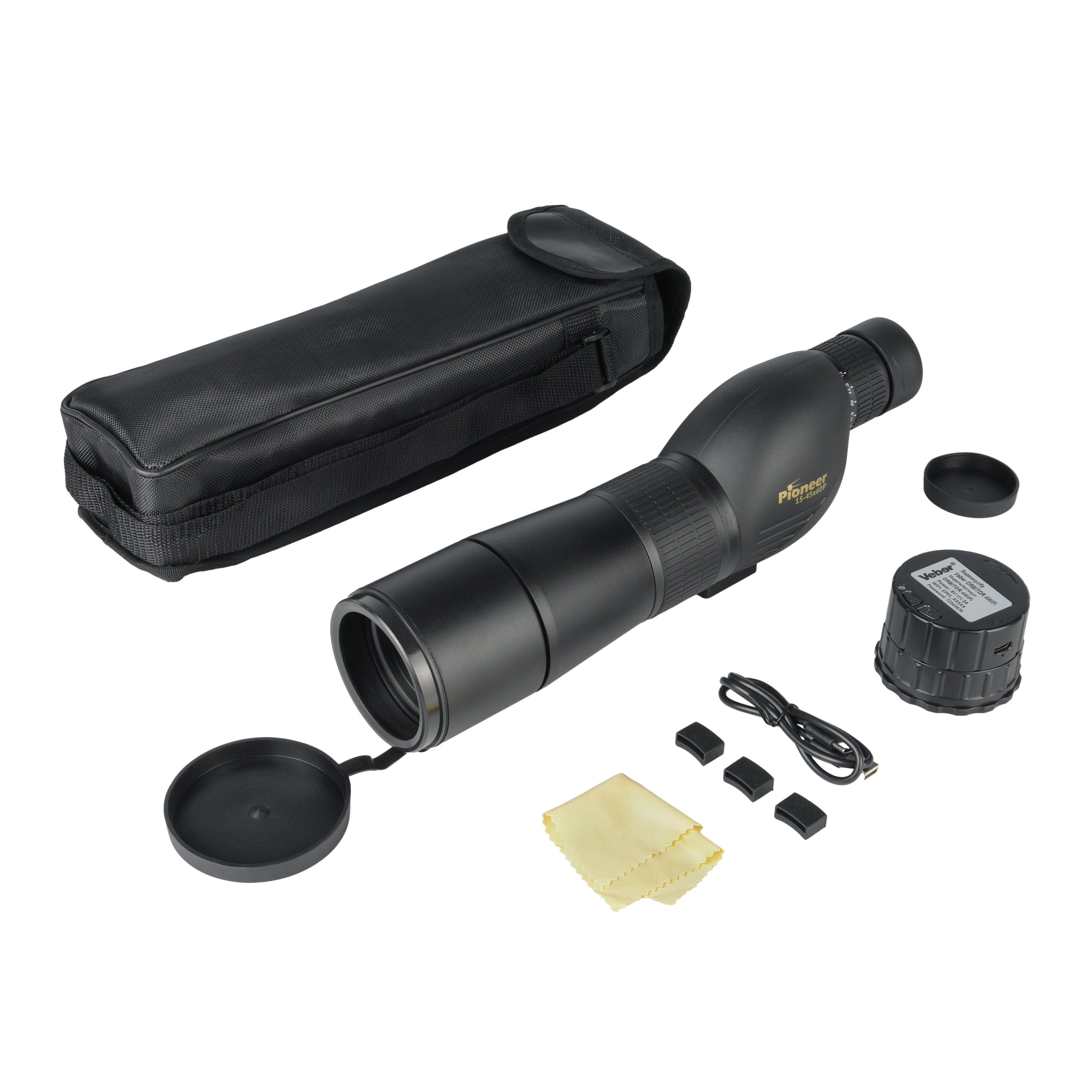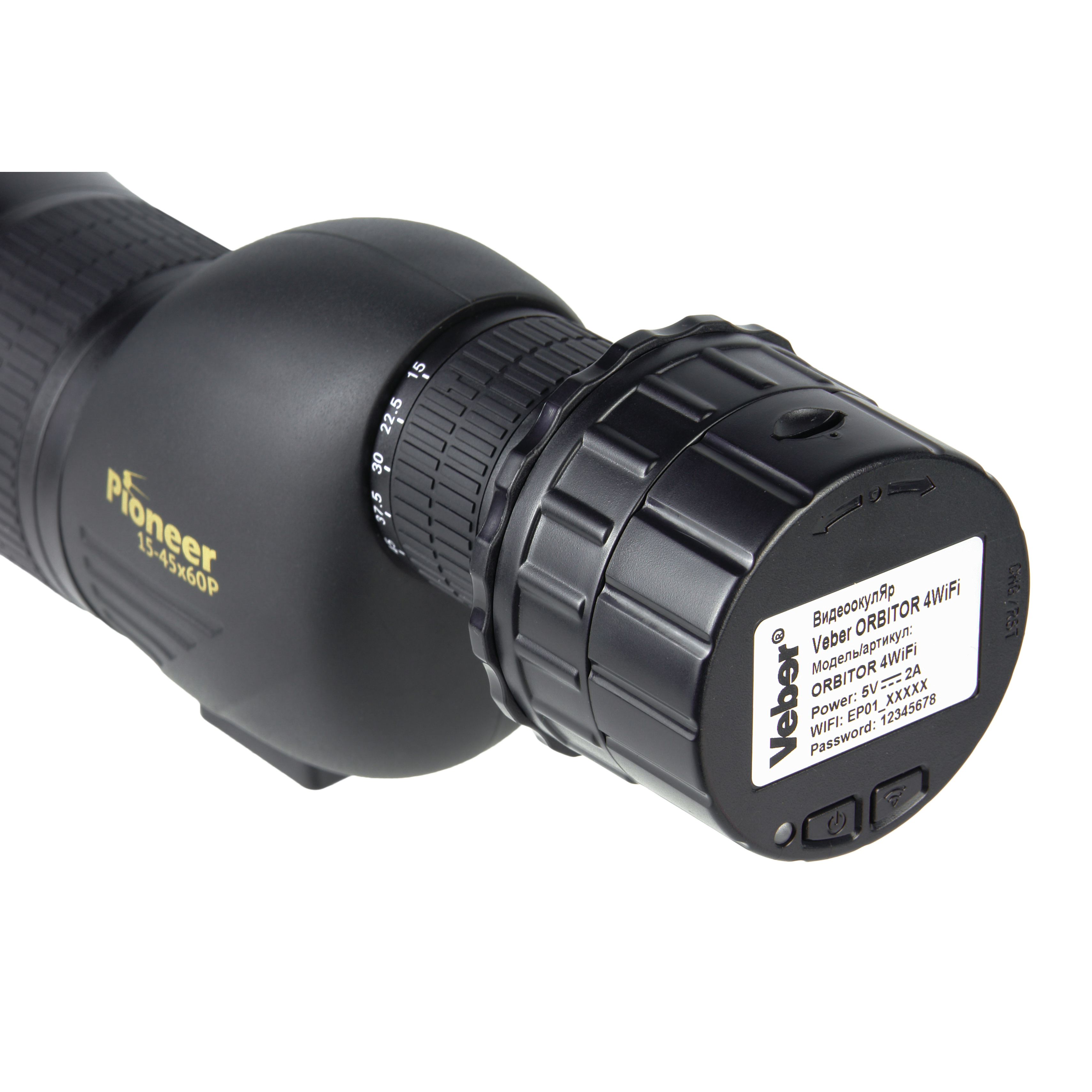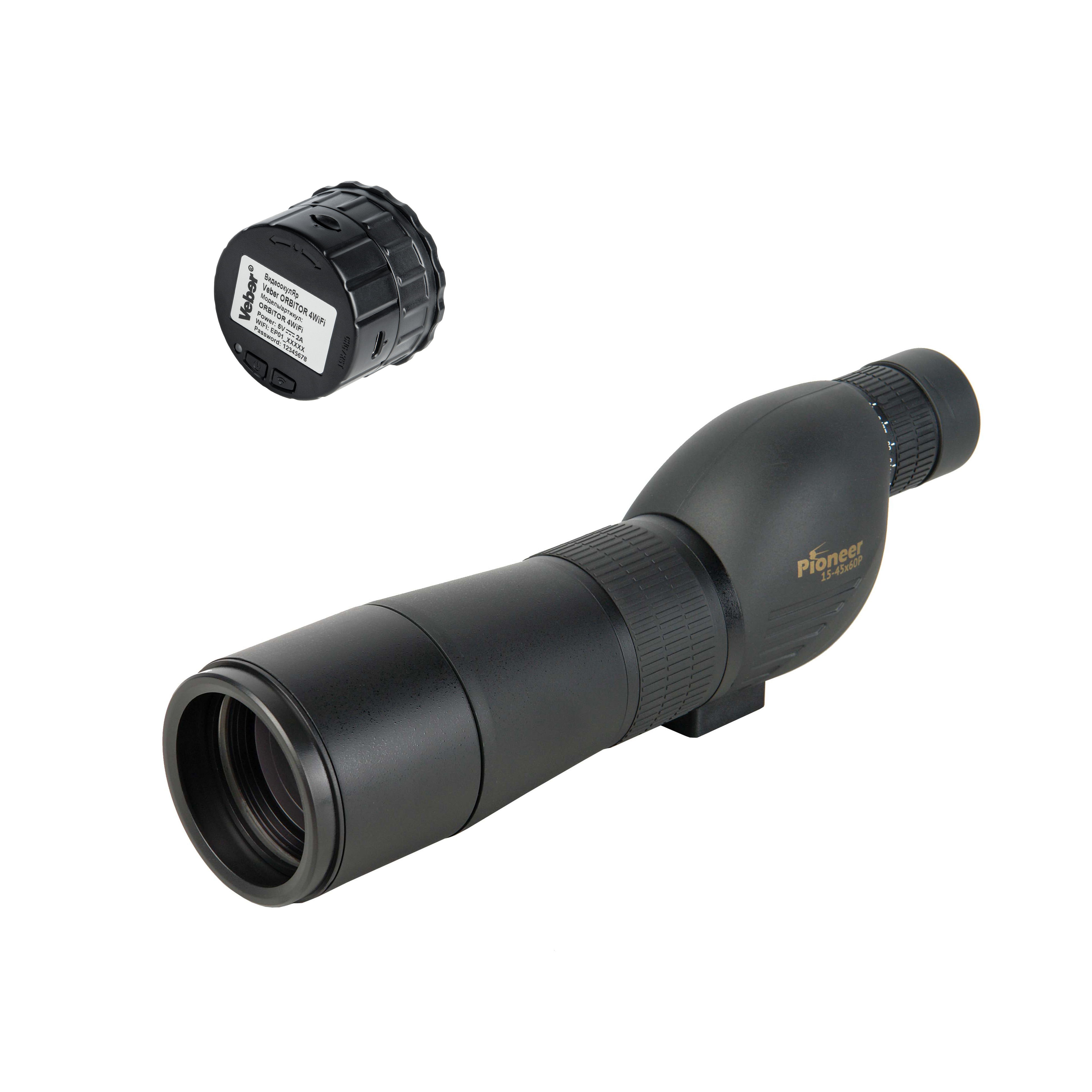 Veber PioneerDigital 15-45x60 PD с WiFi — цифровой комплект для наблюдения и записи с передачей данных по беспроводной сети. Устройство сочетает зрительную трубу Veber Pioneer 15-45x60 Р с переменным увеличением 15-45x и видеоокуляр Veber ORBITOR 4WiFi с поддержкой WiFi.