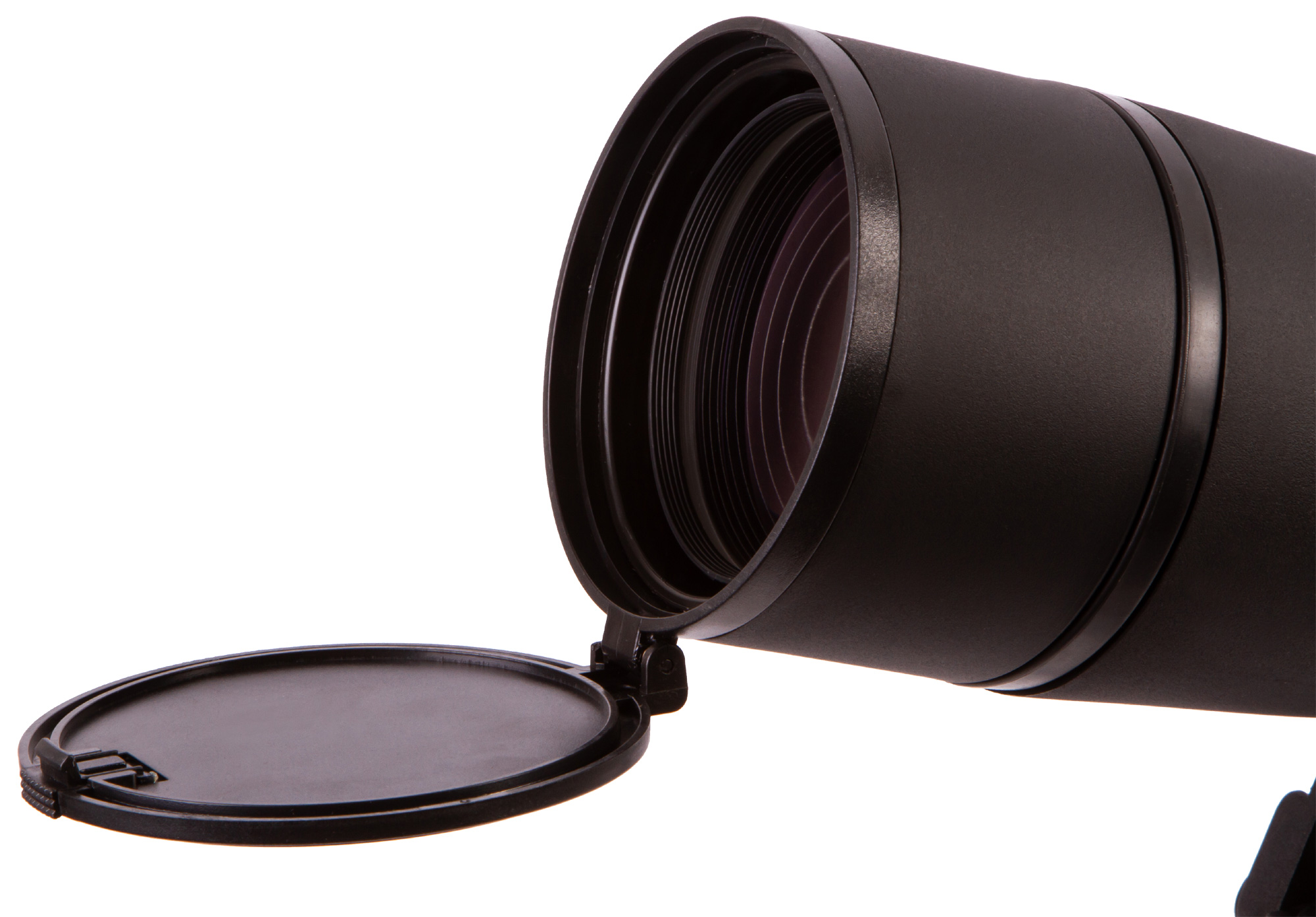 В зрительной трубе используются оптические элементы из стекла BK-7, поверхности которых просветлены несколькими слоями специального покрытия. Объектив диаметром 80 мм эффективно собирает свет, что позволяет вести наблюдения даже в сложных условиях (сумерки, предрассветные часы, пасмурная погода). Увеличение изменяемое, его можно выбирать в диапазоне от 20 до 60 крат. Окуляр установлен наклонно, что упрощает наблюдение околозенитной области. А тем, кто носит очки, понравится наличие поворотно-выдвижного наглазника.