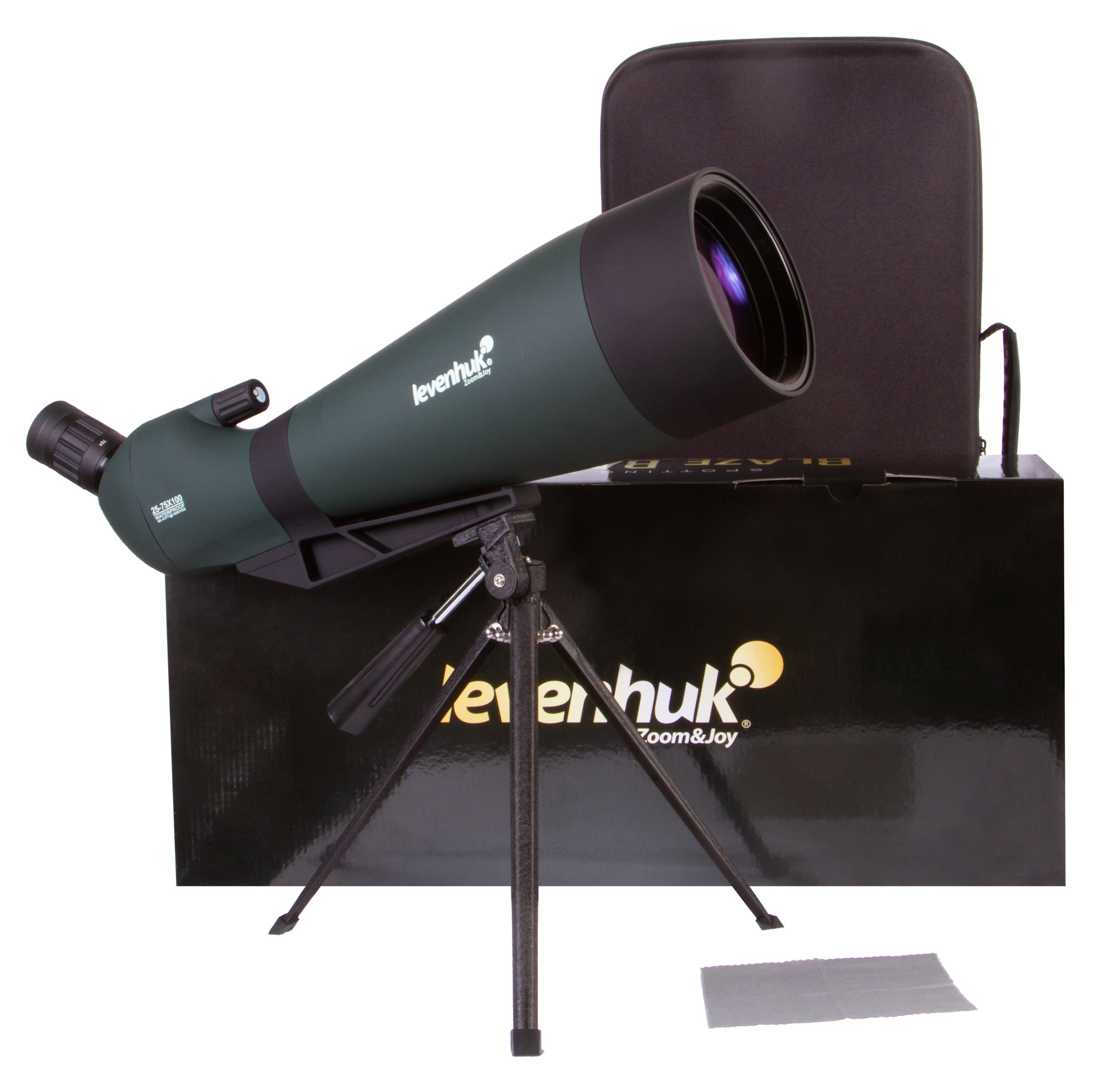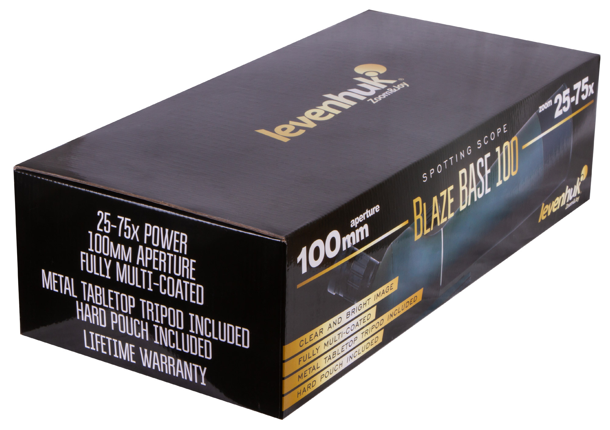 Levenhuk Blaze BASE 100 – старшая модель зрительной трубы любительской линейки оптических приборов. Обладает диапазоном увеличения от 25 до 75 крат, 100 миллиметровой входной апертурой и расширенной комплектацией. Предназначена для универсального использования.