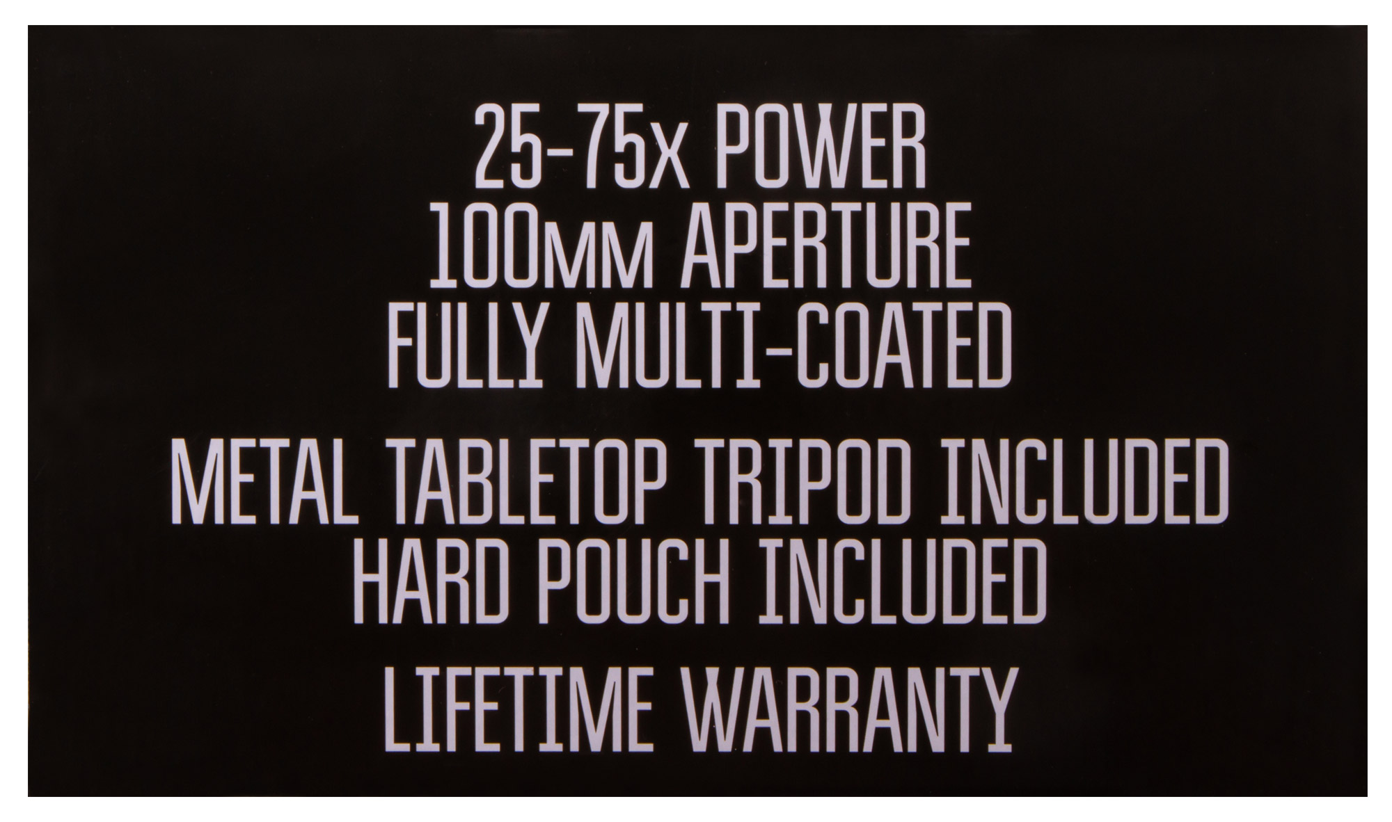- Вариообъектив с диапазоном 25-75 крат и большой входной апертурой;