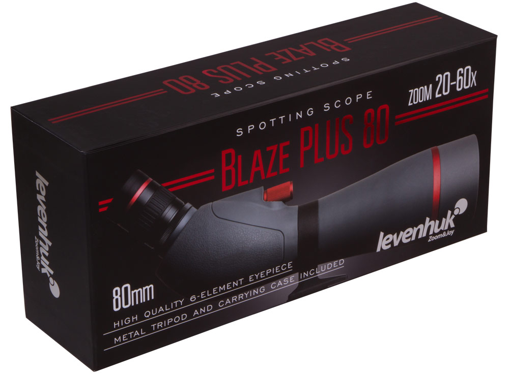 Levenhuk Blaze PLUS 80 – зрительная труба продвинутого уровня с большой входной апертурой, влагозащитным корпусом и широким диапазоном вариативного увеличения. Идеально подходит для охоты, рыбалки, полевых маневров, просмотра спортивных и социальных событий, иных нужд.
